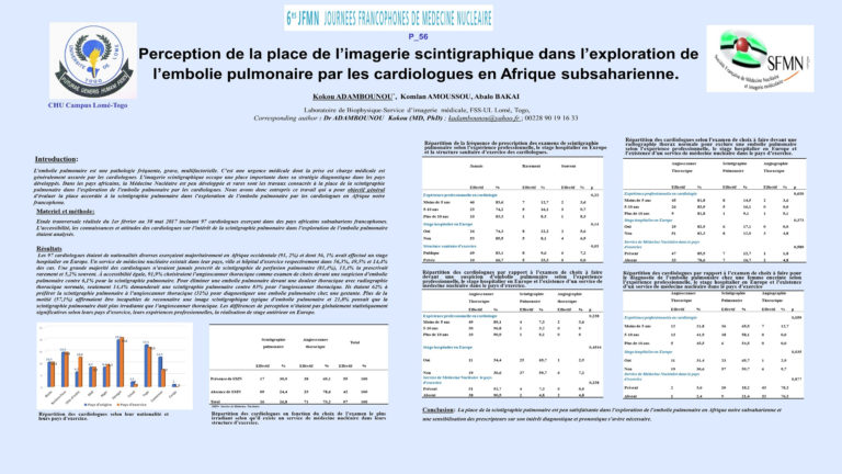 Perception de la place de l’imagerie scintigraphique dans l’exploration de l’embolie pulmonaire par les cardiologues en Afrique subsaharienne francophone