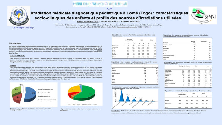 Irradiation médicale diagnostique pédiatrique a Lomé (Togo) : caractéristiques socio-cliniques des enfants et profils des sources d’irradiations utilisées.