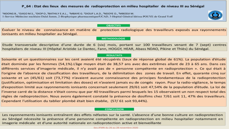 ETAT DES LIEUX DE LA RADIOPROTECTION EN MILIEU HOSPITALIER DE NIVEAU III AU SENEGAL
