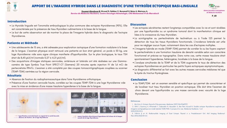 Thyroide ectopique basi-linguale: Apport de la scintigraphie couplée a la TEMP/TDM