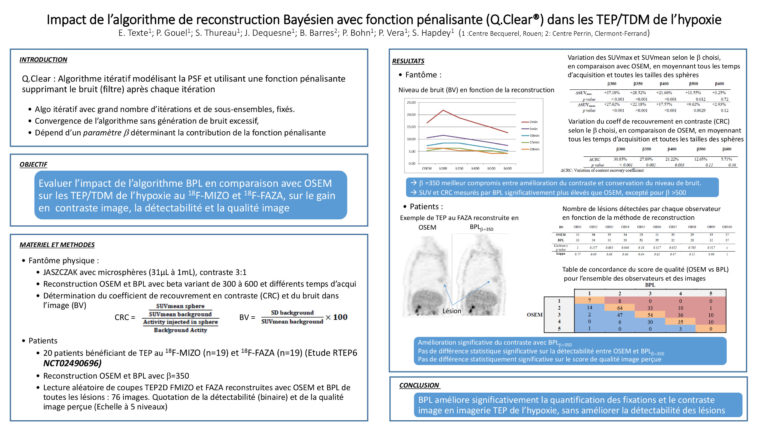 Impact de l’algorithme Bayesian Penalized Likelihood (Q.Clear(R)) par rapport a la reconstruction OSEM sur des images TEP hypoxiques a faible contraste.