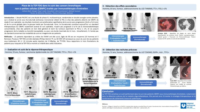Suivi des carcinome bronchiques non a petites cellules sous durvalumab en TEP 18F-FDG : expérience au CHU d’Avicenne chez 15 patients.