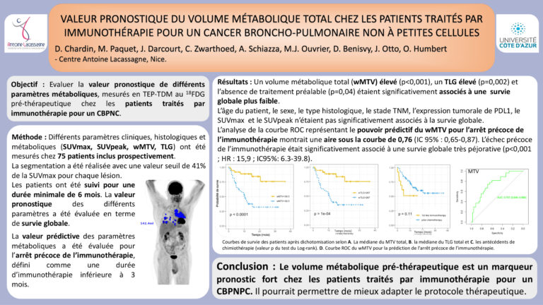 Valeur pronostique du volume métabolique total chez les patients traités par immunothérapie pour un cancer broncho-pulmonaire non a petites cellules