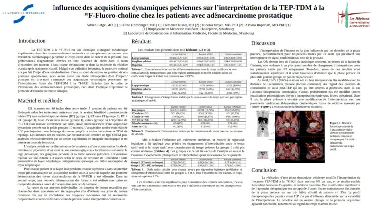 Influence des acquisitions dynamiques pelviennes sur l’interprétation de la TEP-TDM a la 18F-choline dans le suivi des patients avec adénocarcinome prostatique