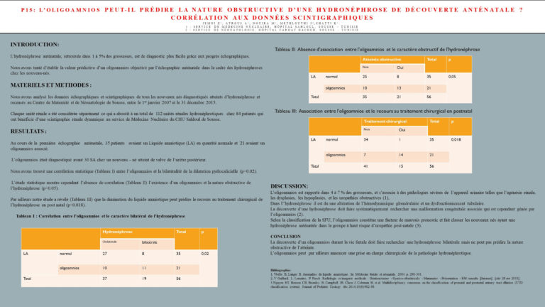 L’oligoamnios peut-il prédire la nature obstructive d’une hydronéphrose de découverte anténatale ? Corrélation aux données scintigraphiques .
