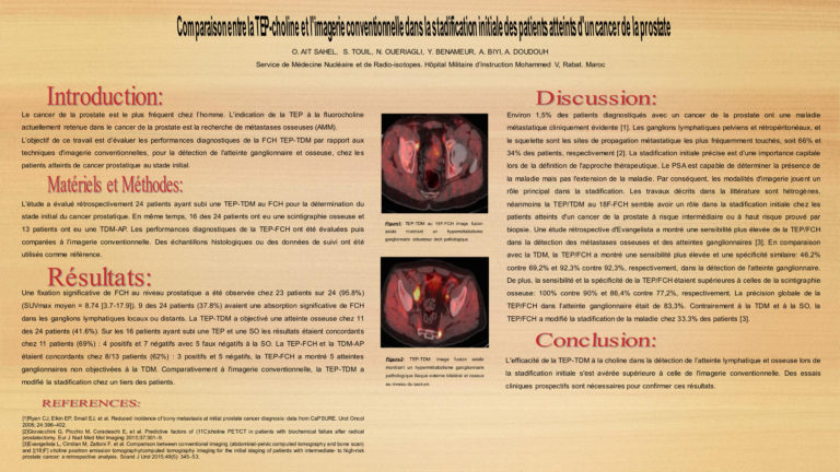 Comparaison entre la TEP-choline et l’imagerie conventionnelle dans la stadification initiale des patients atteints d’un cancer de la prostate.